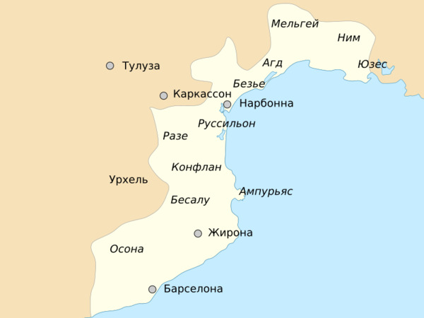 Да и правили они очень короткий отрезок времени – примерно с 750 по 812 годы, далее Мельгёй (или пока еще Магелон) попадает под руку куда более могущественных маркграфов Септимании (иначе маркизат Готия), первый из этих правителей был Бернар Септиманский. Сменяя друг друга, преемники Бернара владеют маленьким графством до 878 года, пока, наконец графиней не становится некая Гильермонда (Гильемона). Как считается, эта женщина принадлежала к старому (до Барселонского периода владычества) вышеупомянутому графскому роду.