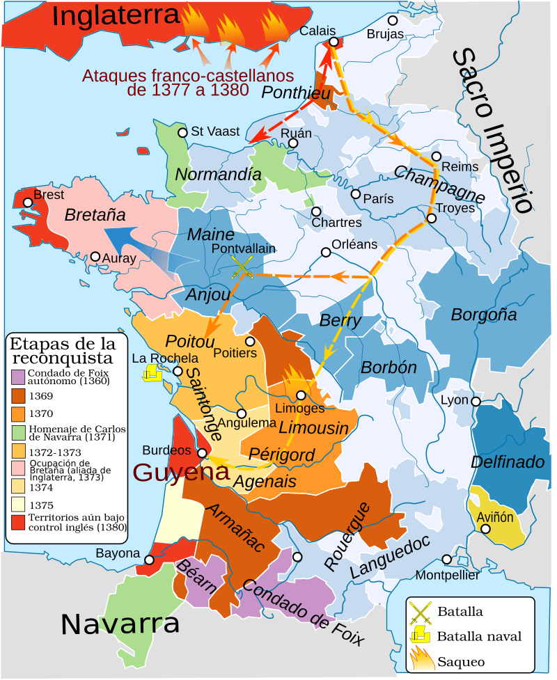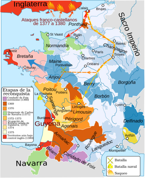 Таким образом, Валеран III (1355-1415) находился с Сигизмундом Люксембургом в пятой степени родства по законной мужской линии. Впервые его имя появляется в документах и хрониках году в 1369-ом, не достигнув еще возраста 15 лет он сражается под знаменами своего отца Ги IV, который был верным последователем Карла V. Как раз в 1369 году, после длительной и серьезной подготовки, король Франции начал свою масштабную Реконкисту - возвращение французских земель, утерянных по договору в Бретиньи. В этом же году Валерана посвящают в рыцари.