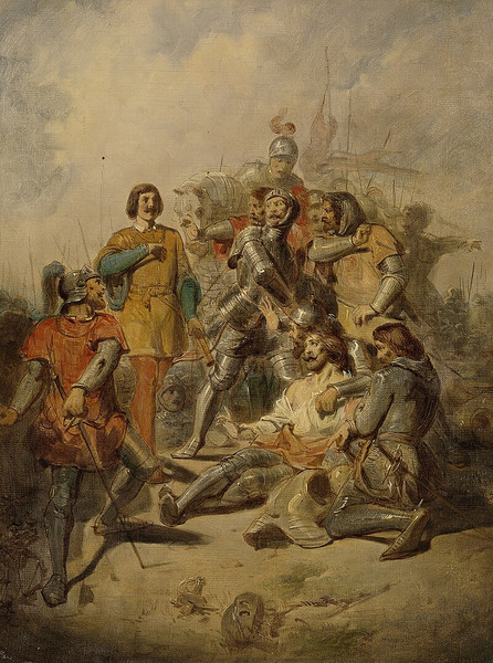 Но у обеих стороны были еще и невосполнимые потери среди командного состава. Во-первых, Эдуард, герцог Гелдерна пал, сраженный стрелой в лицо. И, по всеобщему убеждению, эта стрела прилетела из рядов его собственной армии - то ли случайно, то ли, скорее всего, умышленно, но это уже другая история - в герцогстве Гелдерн был уже свой династический конфликт, деятельным участником которого и был как раз Эдуард.